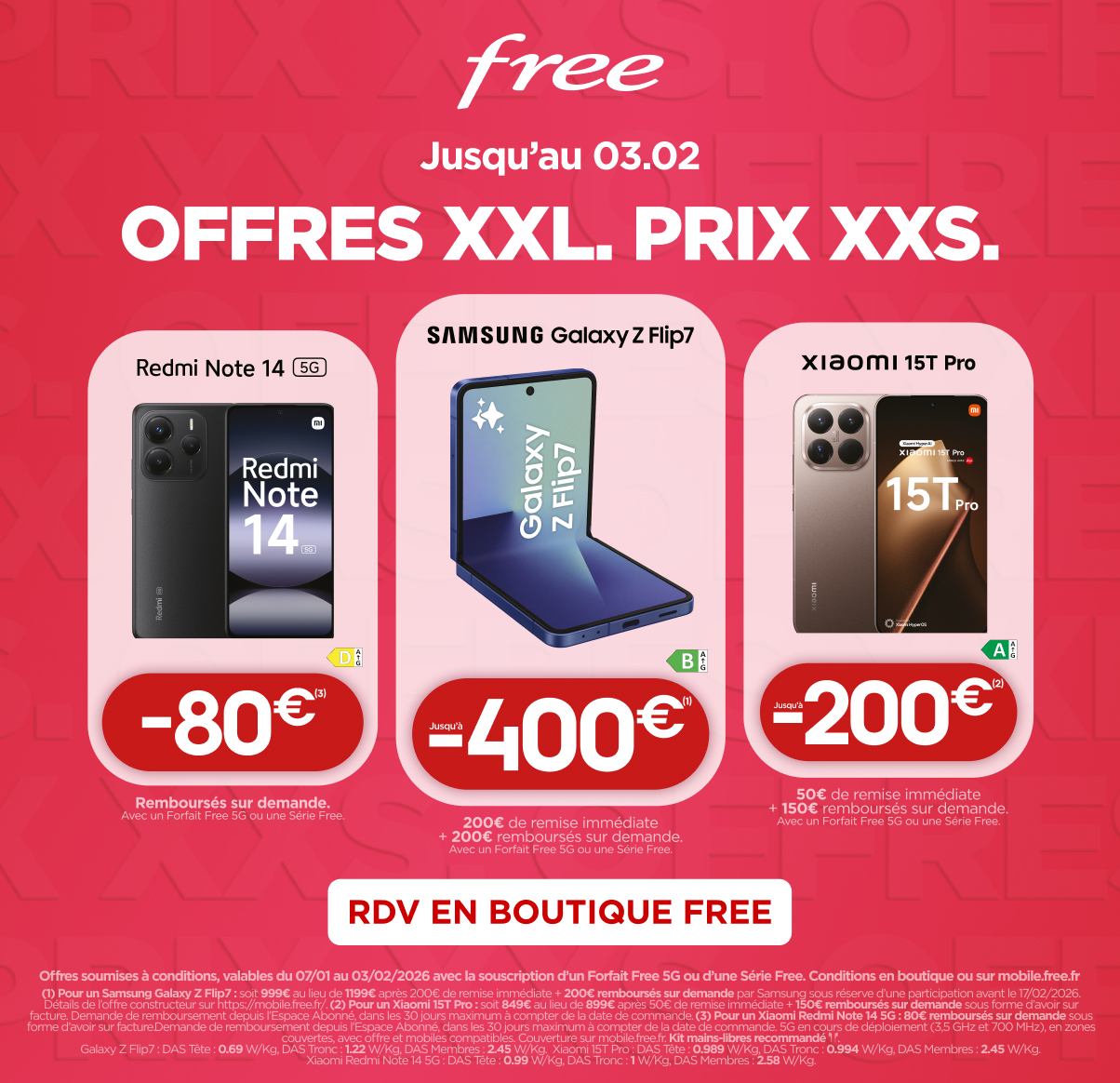 Les Offres XXL à prix XXS, c’est chez Free ! Retrouvez de nombreuses offres exclusives dans toutes les boutiques Free !